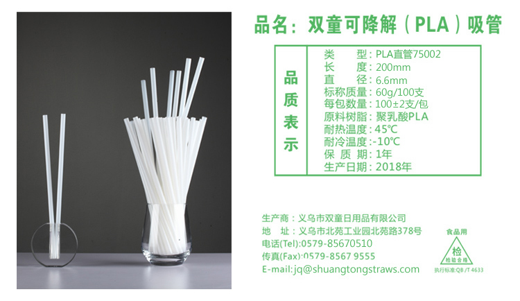 雙童PLA可降解環(huán)保吸管 一次性可樂冷飲本色直管