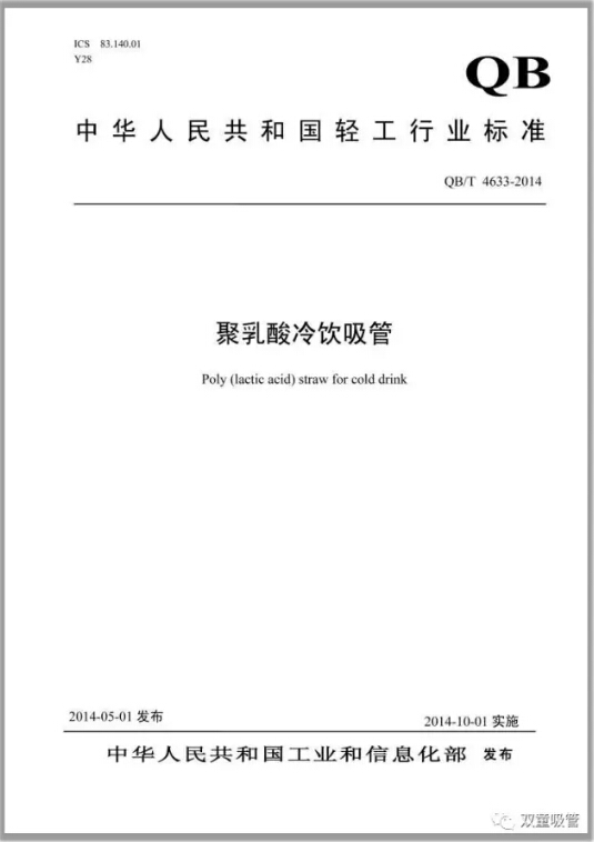 “雙童”主導(dǎo)起草的 QB/T《聚乳酸冷飲吸管》國家行業(yè)標(biāo)準(zhǔn)