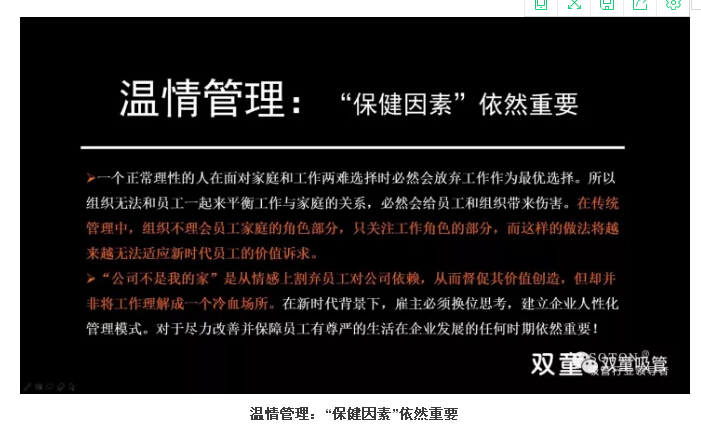 在新時(shí)代背景下,只關(guān)注員工工作、不關(guān)注員工家庭的管理方法將越來(lái)越無(wú)法適應(yīng)新時(shí)代員工的價(jià)值訴求。實(shí)際上,“公司不是我的家”觀點(diǎn)并非是企業(yè)的冷血,而是讓員工從情感上割棄對(duì)公司的依賴,從而督促其價(jià)值創(chuàng)造。企業(yè)主必須換位思考,建立企業(yè)人性化管理模式。我們相信,盡力改善并保障員工有尊嚴(yán)的生活在企業(yè)發(fā)展的任何時(shí)期都非常重要!