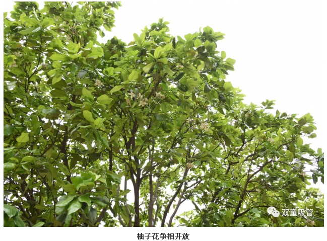 “雙童”在建廠之初,就在廠區(qū)里種了40多棵的柚子樹。每到初春時節(jié),柚子樹上就會結(jié)出花苞,隨著天氣一天天變暖,花苞競相綻放,清新淡雅的花香讓人心曠神怡!