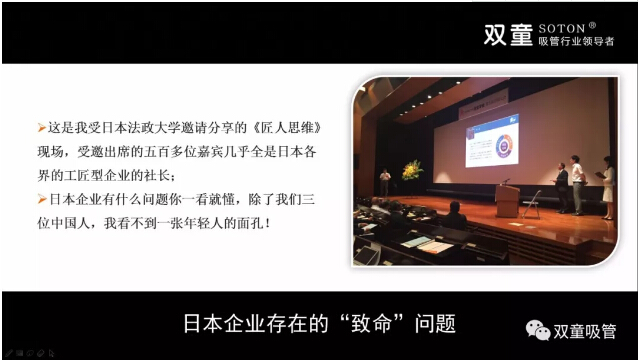 與此同時(shí),樓仲平也分享了“日本企業(yè)存在的‘致命’問題”。樓仲平在受邀日本大學(xué)講課時(shí)曾發(fā)現(xiàn):基本上來聽課學(xué)習(xí)的幾乎是60歲以上的日本企業(yè)主,幾乎看不見年輕人!究其原因,是由于極致的“工匠精神”讓日本的年輕人不愿意接班。1995年以來的二十年間,日本中小企業(yè)經(jīng)營(yíng)者年齡峰值從47歲變成了66歲,到了2015年,人數(shù)最多的又變成了66歲,有23萬人。也就是說,日本中小企業(yè)領(lǐng)導(dǎo)人從中年人為主變成了老年人為主,經(jīng)營(yíng)層老齡化成為日本中小企業(yè)的突出特征!