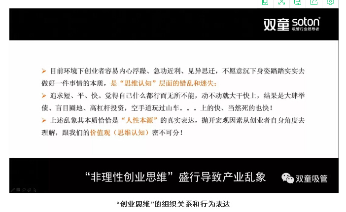 5月29日晚7:00,“雙童”第230期學(xué)習(xí)會(huì)在九樓閣正式開(kāi)講!本次課程由樓仲平帶來(lái)他今年的最新課程《淺談“理性創(chuàng)業(yè)思維”》!要說(shuō)這堂課,可是“重量級(jí)”,光是這個(gè)月都已經(jīng)在浙大講過(guò)好幾回,并引發(fā)了聽(tīng)課學(xué)員的一致好評(píng)!在內(nèi)部員工的強(qiáng)烈呼聲下,樓仲平也決定在連續(xù)兩天的時(shí)間里,將這堂課進(jìn)行針對(duì)性的講授,同時(shí)開(kāi)放外部聽(tīng)課名額,引導(dǎo)大家共同認(rèn)知“理性思維”!