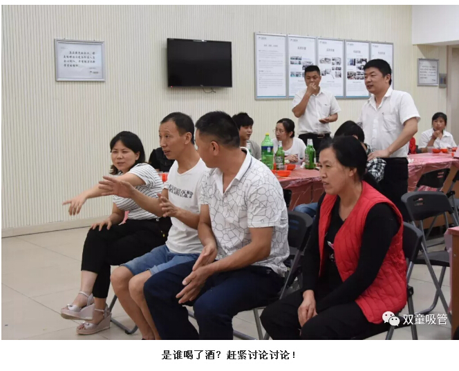 “比比誰更快?”可是團隊游戲哦,考驗的是大家的默契程度!瞧,第一位出戰(zhàn)者剛運送完乒乓球,第二位就開始吃西瓜、第三位馬上用眼鏡吸管喝飲料啦…… 最快的團隊僅僅用了兩分鐘就完成了游戲,大家真是默契十足呀!