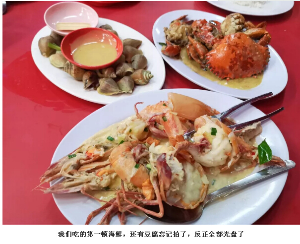 晚上,我們當(dāng)然就在最火的肥媽海鮮樓用餐啦,這應(yīng)該是島上唯一一家不能買海鮮到店里加工的餐廳了,原因是實(shí)在太火爆,和大茄來(lái)一樣一樣的。味道也是棒棒的,潘大爺對(duì)前一晚的招牌豆腐念念不忘,又點(diǎn)了一份肥媽牌招牌豆腐,也是很好吃呢!不過(guò),價(jià)格并不便宜,所以我們第二天就自己找當(dāng)?shù)厝速I了海鮮找飯店加工啦!