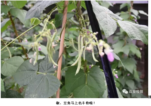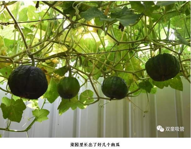 除此之外,玉米、扁豆、辣椒、豆角、毛豆、番茄、西葫蘆等蔬果都成熟啦,等待著吃貨們的垂憐呢!值得一提的是,菜園里還有一片西瓜地,再過段時(shí)間“雙童”人又有口???!