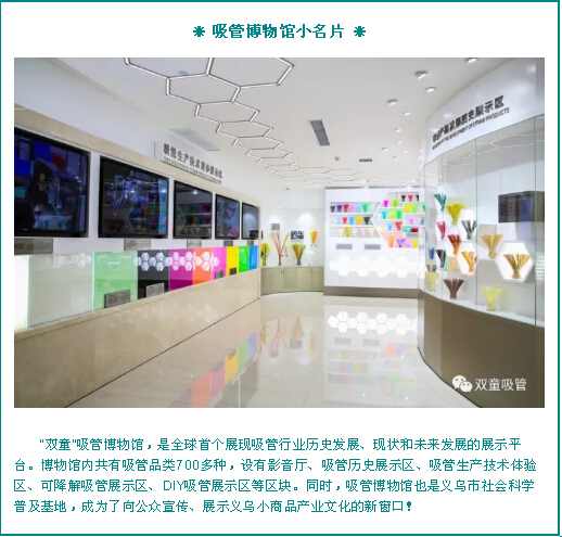 84日下午,親子樹公益發(fā)展中心的親子家庭游學團走進“義烏市社會科學普及基地”——“雙童”的吸管博物館,探索“小吸管,大世界”。一根吸管能有什么花頭?想知道更多嗎?那就快跟著吸管妞一起來看看吧!