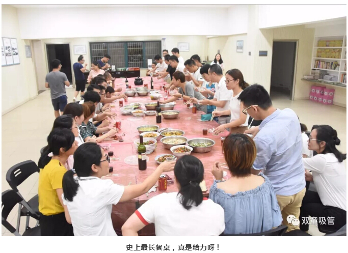 我們?cè)诰艠情w擺設(shè)了史上最長(zhǎng)餐桌