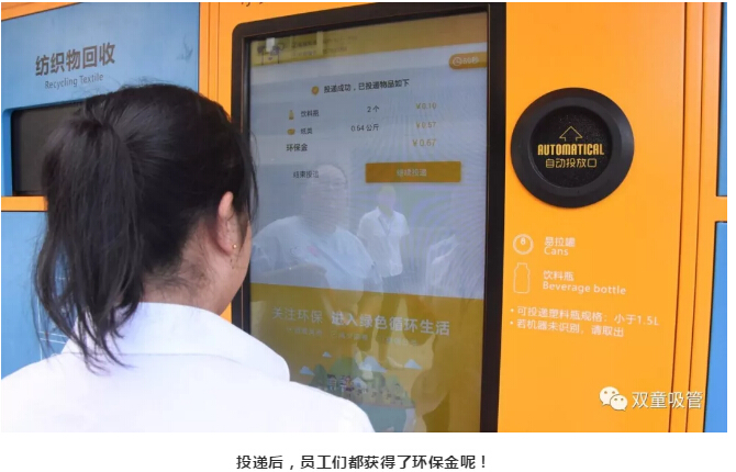 以后“雙童”人可以把各種垃圾進(jìn)行分類“投喂”給廠區(qū)里的“小黃狗”,不僅促進(jìn)了環(huán)保,還可根據(jù)投入垃圾的數(shù)量和種類,獲得對應(yīng)金額的鼓勵(lì)金哦!聽到這,大家是不是有些羨慕“雙童”人呢?