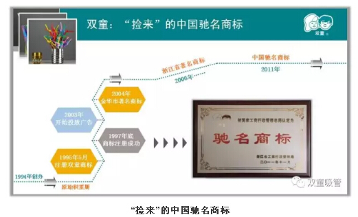 就在許多人認為吸管這樣的產(chǎn)品不值得做品牌時,“雙童”卻早在1995年就已經(jīng)注冊了商標,就此走上了品牌發(fā)展之路。