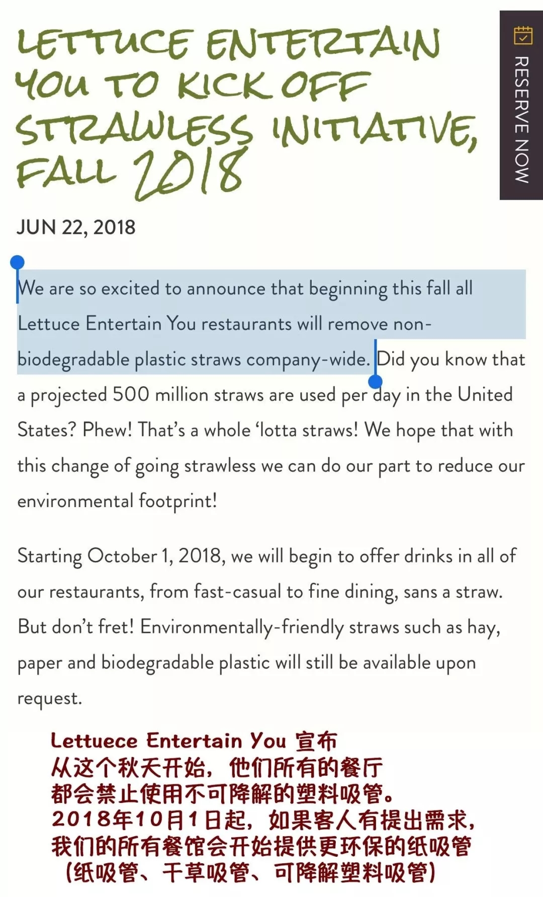 也將在秋天之前換掉旗下所有不可降解的吸管。