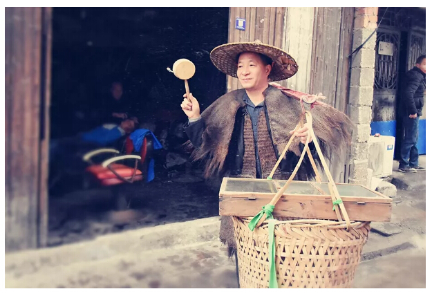 挑貨郎擔(dān)只在春節(jié),平常沒(méi)的挑,通常臘月二十左右走,元宵前回來(lái)。每天挑一百多斤的東西,走幾十公里山路,晚上十點(diǎn)鐘回家,腳上都是磨爛的血泡,遇上下雨天就渾身濕透。到了城市,城里人看不起我們,臟兮兮,人家不喜歡,年輕人老是欺負(fù)你、戲弄你。