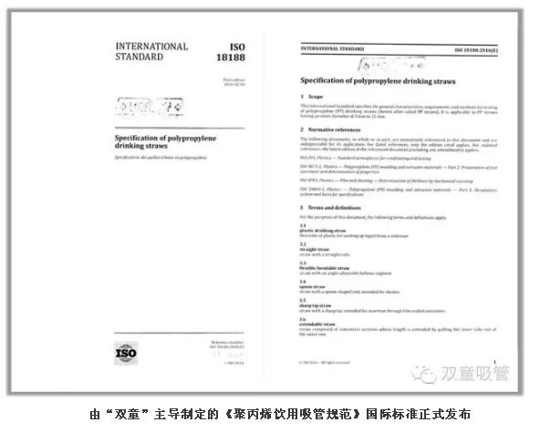 在大多數(shù)人沒有意識到標準的重要性時,“雙童”早在20多年前就意識到標準制定權和行業(yè)話語權的重要性。從1997年開始,“雙童”先后主導起草了《聚丙烯飲用吸管》的行業(yè)標準、浙江標準、國家標準、ISO國際標準等國家級標準的編制工作,從而牢牢掌握住全球吸管行業(yè)發(fā)展的脈搏,獲得了全球吸管產(chǎn)業(yè)的標準制定權和行業(yè)話語權!