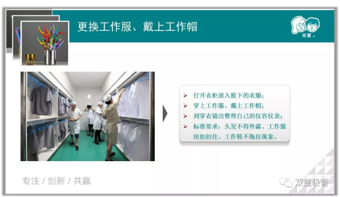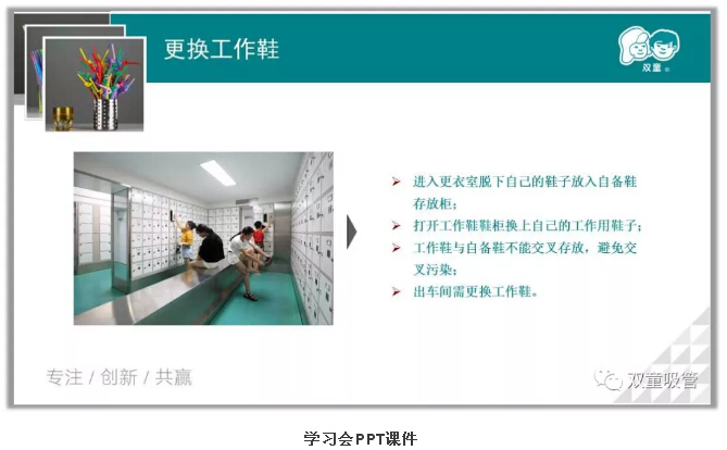 聽到這里,很多新員工也理解了吸管衛(wèi)生保障的重要性。接下來,就讓我們跟著毛講師的課程,再次重溫一下出入車間的防護措施吧: