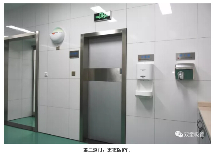3.經(jīng)過了兩道防護門后,員工們更衣后通過更衣防護門進(jìn)入洗手消毒區(qū)域。