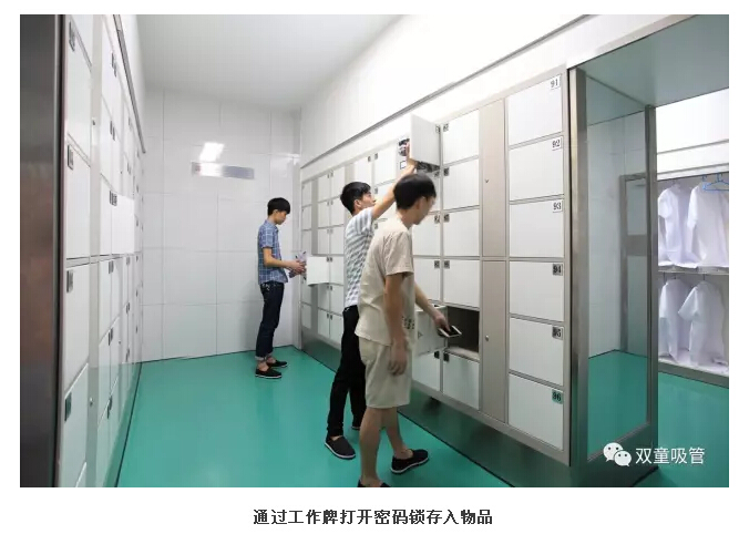 2、員工來到第一更衣區(qū),將自己的私人衣物儲存在柜子中。