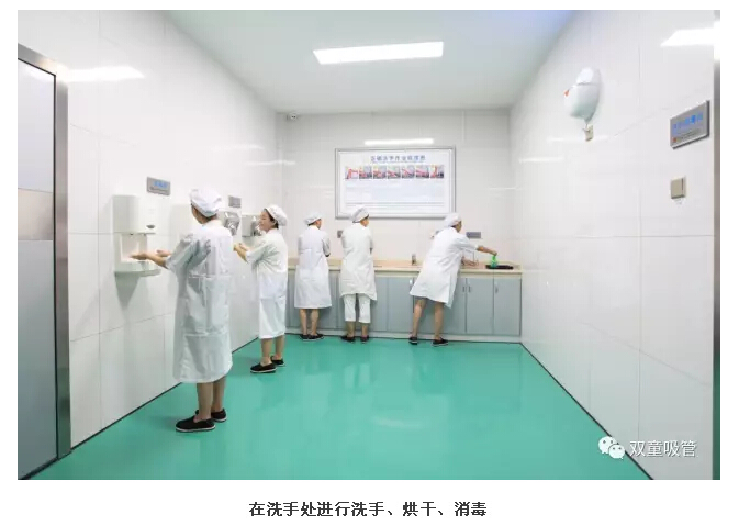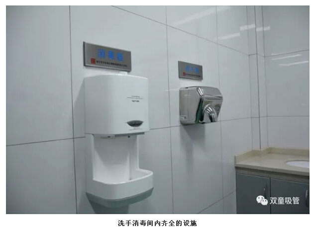 4、整理完衣物后,來到洗手消毒間,進(jìn)行洗手、烘干、消毒。