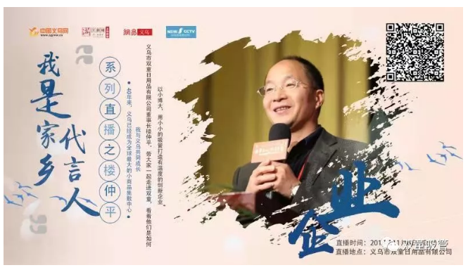 據(jù)悉,“我是家鄉(xiāng)代言人”系列直播是中國(guó)義烏網(wǎng)圍繞改革開(kāi)放四十周年所策劃的大型直播活動(dòng),邀請(qǐng)義烏各行各業(yè)的代表人物,在他們的崗位上暢談四十年來(lái)所發(fā)生的變化。