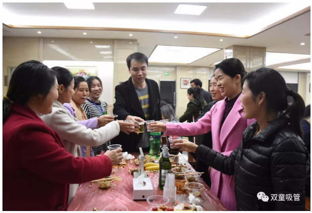 壽星們一齊聚一堂,聊天、品嘗美味,共同慶祝美好的生日!員工們聚在一起干上一杯嘮嘮家常,瞧,大家都樂呵呵的!