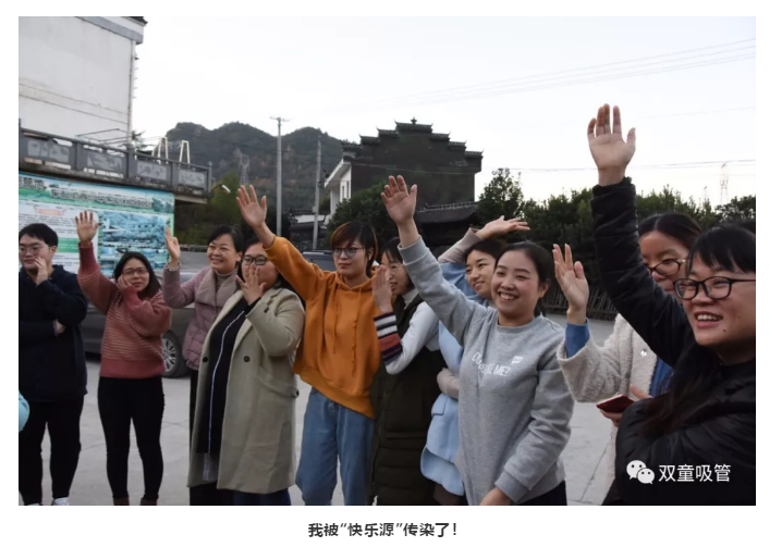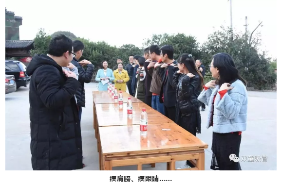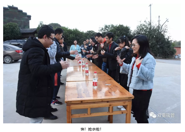 咦!這是發(fā)生了什么?原來,這是“雙童”人在一起在做團建熱身活動——搶礦泉水呢!