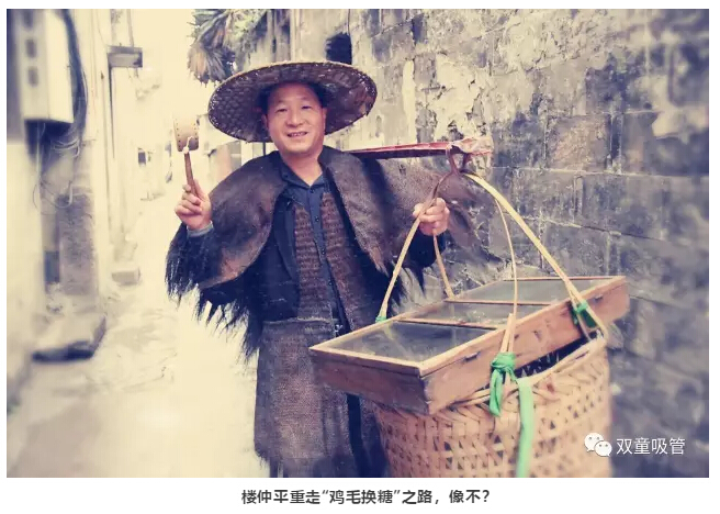 爸爸同意后就帶上我跨上了十多個小時的綠皮火車,一路到了三百公里以外的江西弋陽縣,開始了手搖撥浪鼓的雞毛換糖”……