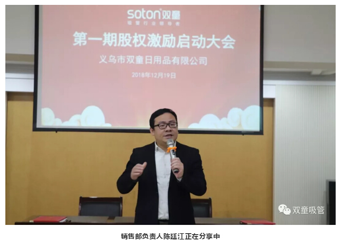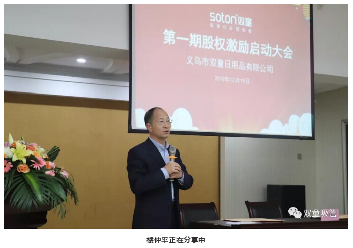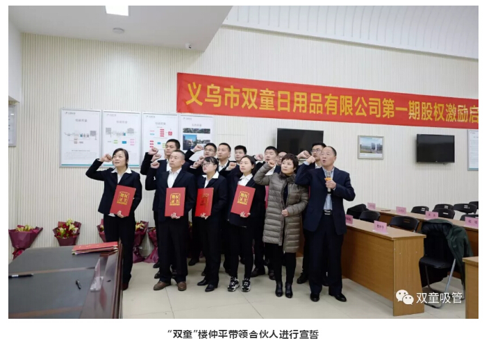 2018年12月19日,對(duì)“雙童”來說,是代表著夢(mèng)想、激情、奮斗的一天!在這一天,雙童吸管第一期股權(quán)激勵(lì)啟動(dòng)大會(huì)在“雙童”九樓閣隆重舉行!“雙童”首批12位核心員工將成為“雙童”的經(jīng)營(yíng)伙伴,一起互相陪伴,走向未來!