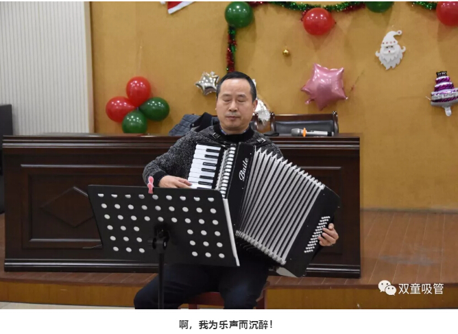 吃飽喝足后,我們的大招就要上線啦!聽(tīng),是手風(fēng)琴的聲音!進(jìn)出口公司的張總和他的夫人宋女士手風(fēng)琴匯報(bào)演出震撼登場(chǎng)!《鴻雁》、《賣(mài)報(bào)歌》、《紫竹調(diào)》……一曲接著一曲,樂(lè)聲美妙,讓人沉醉!