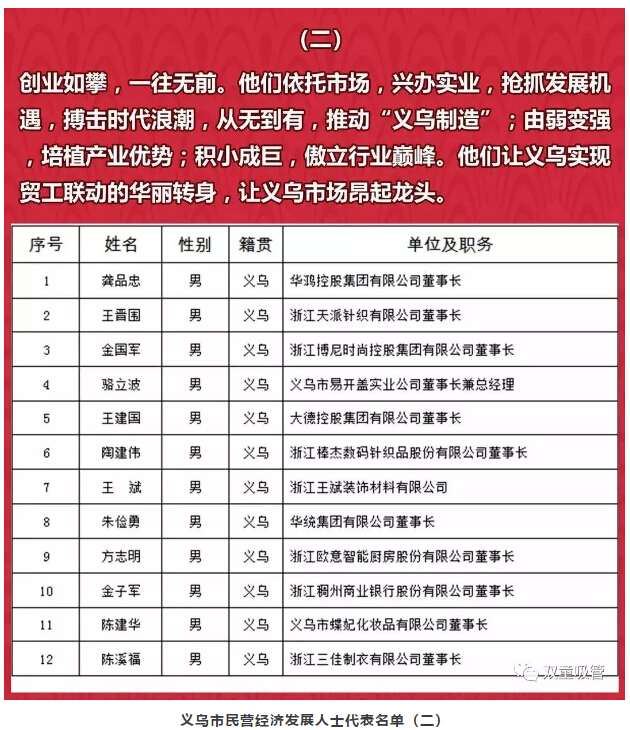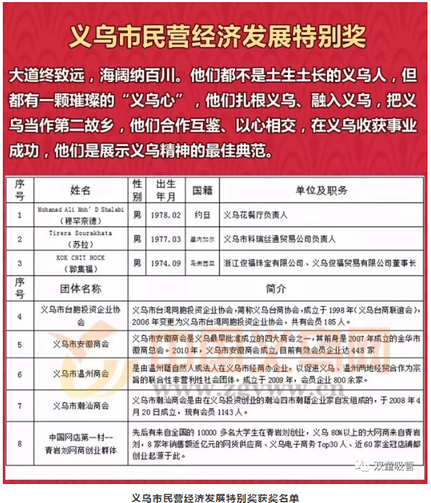 同時(shí),此次大會還對以下的義烏市民營經(jīng)濟(jì)發(fā)展代表人士進(jìn)行了頒獎表彰!