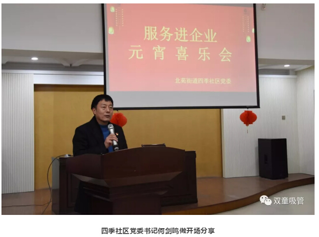 2月18日晚,“雙童”聯(lián)合北苑街道四季社區(qū)黨委,發(fā)揮"雙童同心圓"的黨建引領(lǐng)作用,共同開展了元宵喜樂會(huì)活動(dòng)。此次活動(dòng)除了“雙童”員工代表之外,還邀請了北苑兩新企業(yè)的支部書記、職工代表,大家聚在一起共度溫馨的元宵佳節(jié)!