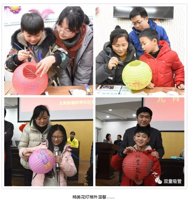 “雙童是我家,我們愛護(hù)它”,“同心同德,同心同向,同心同行”……小小的燈籠經(jīng)過描繪后,顯得格外溫馨……