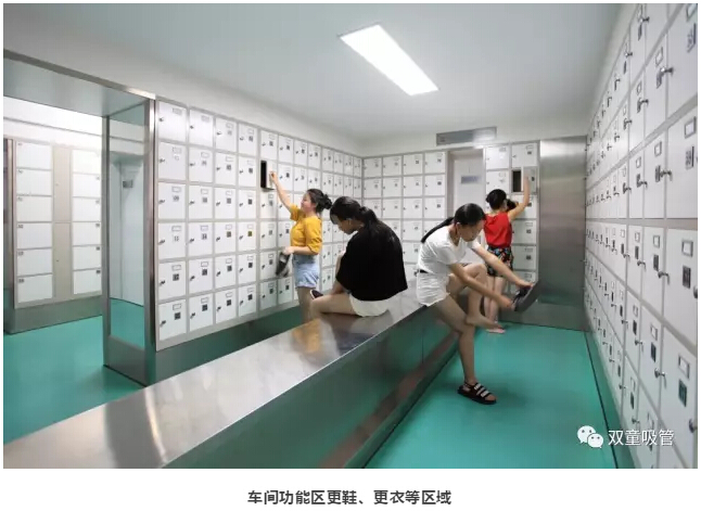 在生產(chǎn)車間入口,“雙童”設置了車間功能區(qū),內(nèi)有更鞋區(qū)、更衣區(qū)、洗手消毒區(qū),風淋室等區(qū)域,配置了高端的烘干器、消毒器、感應水龍頭以及酒精消毒器等硬件。員工們在車間功能區(qū)進行工作服更換、洗手消毒、風淋等一系列操作后,才可進入生產(chǎn)車間。