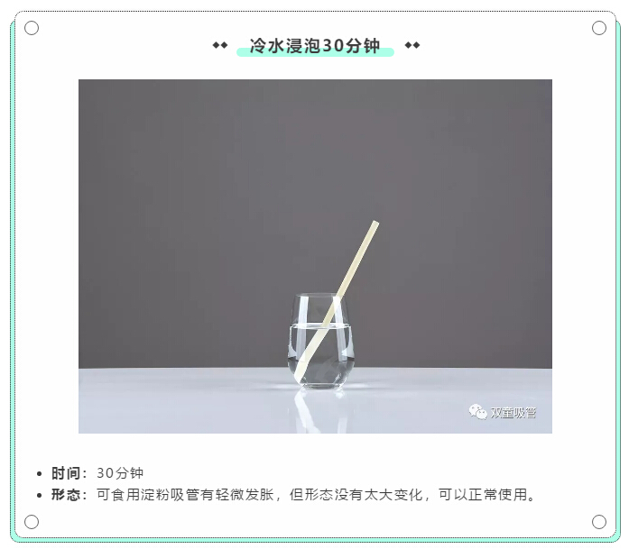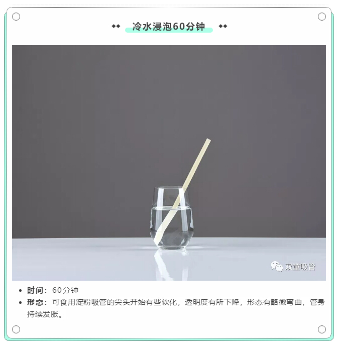 2小時(shí)之后,可食用淀粉吸管會(huì)逐漸糊化分解,神奇消失,源于自然,歸于自然!