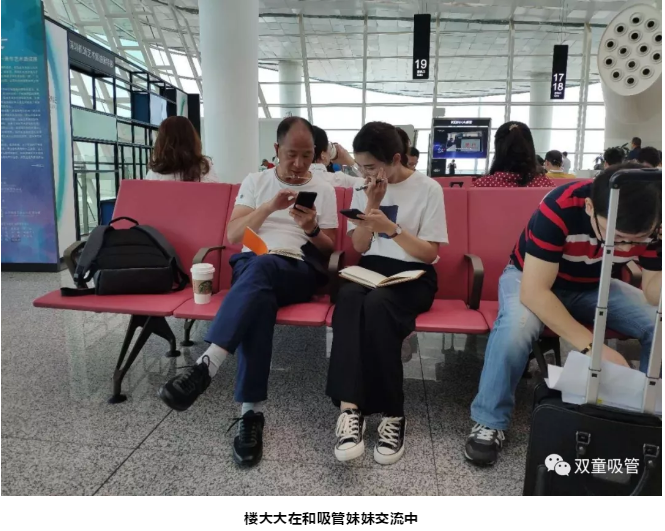 吸管妹妹原本以為樓大大會和大多數(shù)人一樣,在候機的時間里刷刷手機,看看抖音,用娛樂的方式消磨時間。但樓大大所采取的方式卻讓吸管妹妹們大跌眼鏡!