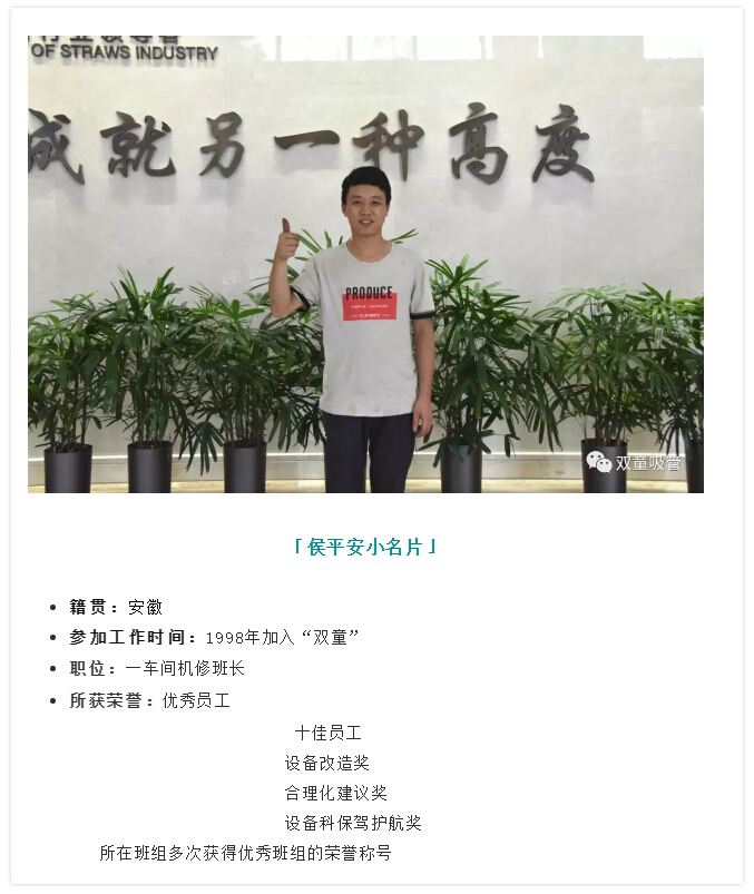 踏實肯干,敢于嘗試,勇于探索……今天,吸管妞要帶大家認識的主人公是一位忠誠追隨“雙童”二十多年的老員工侯平安,講述他從18歲小伙成長為如今獨當一面車間班組長的精彩故事!