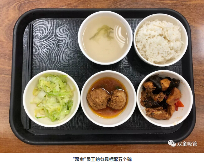 剛來工作的她不明白:一般企業(yè)的食堂大多使用不銹鋼盤,最多再配一個(gè)不銹鋼碗,“雙童”要用五個(gè)碗;多數(shù)企業(yè)用的是簡(jiǎn)易或折疊餐桌椅,“雙童”選用了厚重的實(shí)木款;不少企業(yè)的餐后垃圾只用一兩個(gè)垃圾桶回收,“雙童”要用五六個(gè),有這個(gè)必要嗎?