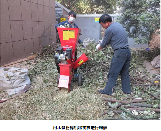 “雙童”的園林崗位配有兩到三人。他們負(fù)責(zé)將修剪綠化植物產(chǎn)生的樹枝、樹葉,用木條粉碎機(jī)粉碎。之后,碎末和部分廚余垃圾、柚子等一起,被投入堆肥發(fā)酵池。