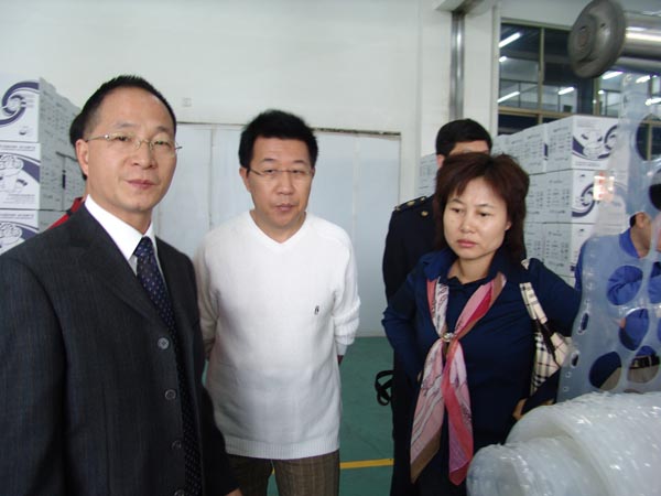 2007年10月24日義烏市檢驗檢疫局龔科協(xié)同國家認(rèn)證認(rèn)可監(jiān)督管理局金立萍副主任、國家質(zhì)量監(jiān)督檢驗檢疫總局徐麗艷副處長一行7人考察我公司。