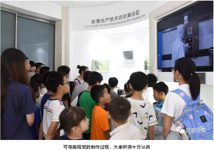 進(jìn)入吸管博物館后,吸管妹妹給小朋友們介紹了可彎曲吸管的制作過(guò)程,長(zhǎng)吸管的用處,這也引起了小朋友們滿滿的好奇心,紛紛緊跟吸管妹妹的身后,認(rèn)真的聆聽(tīng)介紹。