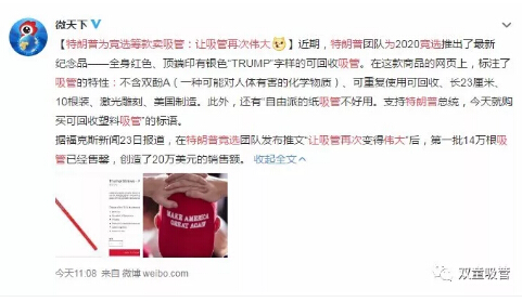 讓吸管再次偉大!特朗普推出可回收吸管一搶而空!