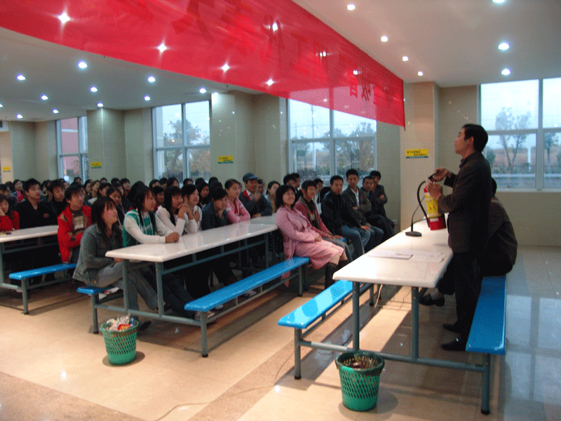 上圖為安全消防知識(shí)宣傳大會(huì)現(xiàn)場(chǎng),消防隊(duì)長(zhǎng)對(duì)消防器材知識(shí)的講解