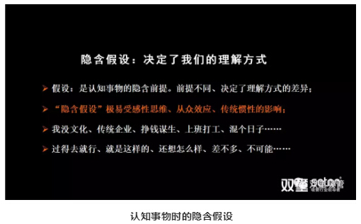 緊接著,樓仲平引導(dǎo)大家突破思維遮蔽,打破隱含假設(shè)!