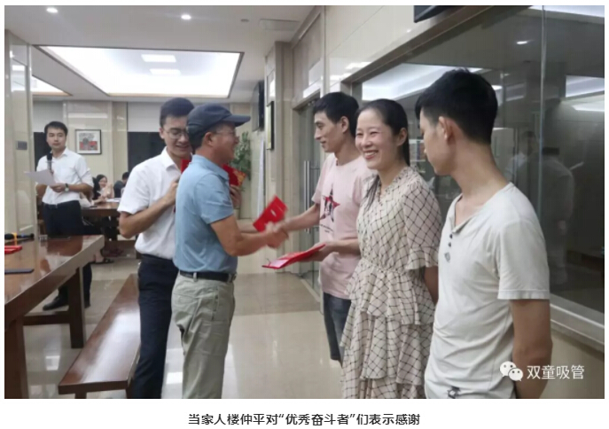 9月9日晚,“雙童”召開(kāi)了關(guān)于8月21日—8月31日階段性競(jìng)賽獎(jiǎng)勵(lì)表彰大會(huì)!會(huì)上,當(dāng)家人樓仲平再次為所有員工站臺(tái),兌現(xiàn)了讓每位“優(yōu)秀奮斗者”獲得更高獎(jiǎng)金的承諾。同時(shí),樓仲平表示每個(gè)月都將與員工站在一起,并鼓勵(lì)和推動(dòng)所有員工“以?shī)^斗者為本”,與“雙童”共同成長(zhǎng)!