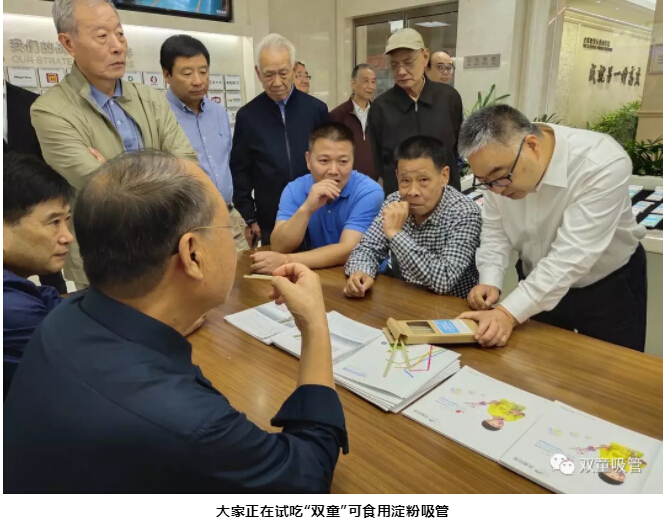 將近半個(gè)小時(shí)的參觀考察臨近結(jié)束,老干部一行再次表示對(duì)“雙童”品類繁多的創(chuàng)新吸管的喜愛,對(duì)“雙童”可食用淀粉的支持,以及對(duì)“雙童”超前的節(jié)能環(huán)保理念表示高度贊賞!“雙童”也將繼續(xù)努力,堅(jiān)持、專注,做好產(chǎn)品,做好企業(yè)!