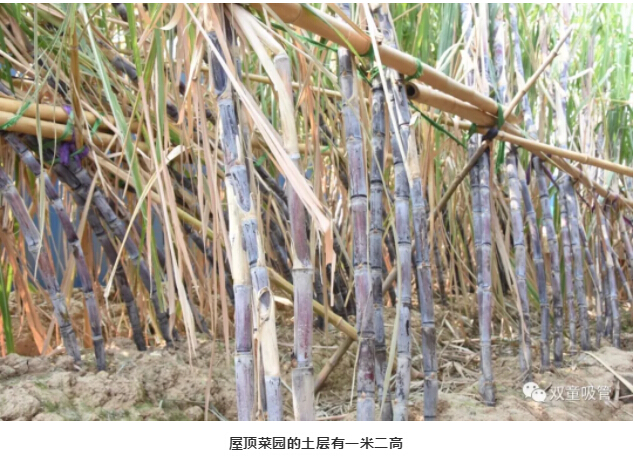 很多人會奇怪,為何空中還能種甘蔗呢?其實,我們屋頂菜園有一米二高的土層,別說甘蔗,石榴樹枇杷樹也照樣種呢!