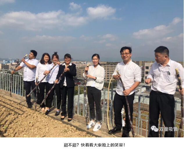 瞧!“雙童”屋頂菜園里的甘蔗也迎來了豐收季,一排排粗壯的甘蔗,紫色的枝干和清悠悠的葉子整齊劃一的在風(fēng)中搖擺,誘人極了!
