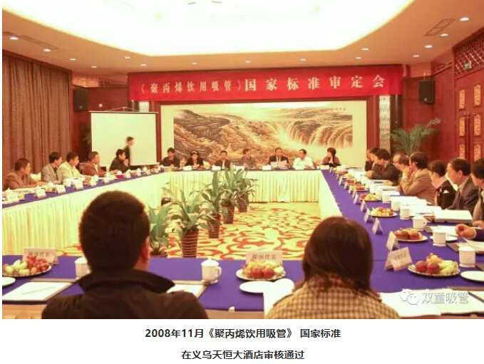 其實(shí),在標(biāo)準(zhǔn)編制起草過程中,“雙童”也曾邀請一些同行企業(yè)共同參與,但由于當(dāng)時(shí)大家的標(biāo)準(zhǔn)意識還比較薄弱,再加上標(biāo)準(zhǔn)編制過程中還需要企業(yè)承擔(dān)一定費(fèi)用,這讓其他企業(yè)都望而卻步,“雙童”自然地成為了吸管行業(yè)承制國家標(biāo)準(zhǔn)的單一企業(yè)。2008年11月,《聚丙烯飲用吸管》 國家標(biāo)準(zhǔn)審定會在義烏天恒大酒店召開。會上審核通過了該項(xiàng)國家標(biāo)準(zhǔn),成為當(dāng)時(shí)金華地區(qū)第一件完全意義上的國家標(biāo)準(zhǔn)。