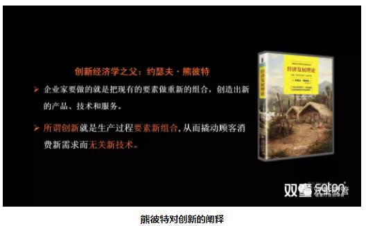 創(chuàng)新經濟學之父約瑟夫·熊彼特,曾在其著作《經濟發(fā)展理論》一書中對“創(chuàng)新”有過這樣的解釋:所謂創(chuàng)新就是生產過程中的要素新組合,從而撬動顧客消費新需求而無關新技術。企業(yè)家要做的就是把現有的各種要素進行重新組合,從而組合出顧客喜歡愿意購買的新產品,其本質就是所謂的創(chuàng)新。