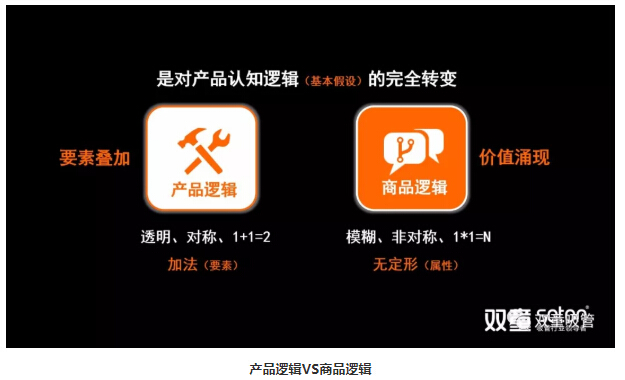 通過對產品進行不斷地要素拆解,能夠得出:產品本身只是要素疊加之和,就像1+1=2這樣。但商品則是在產品之外不斷疊加常人難以看見的內在屬性,我們可以通過“要素拆解”看到這些屬性。
