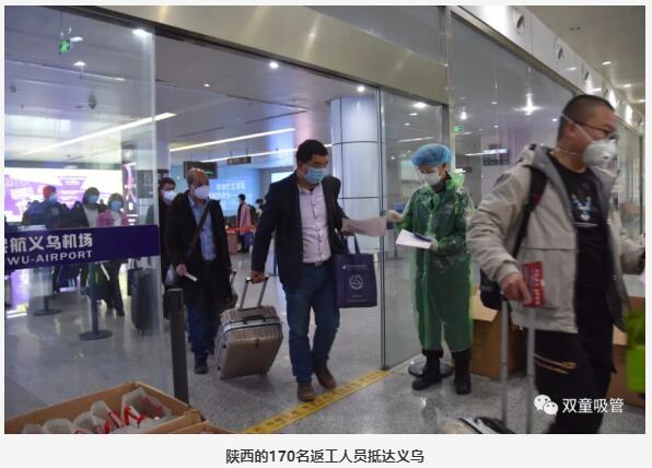 其中,“雙童”的5位陜西籍員工也乘坐此列免費(fèi)航班返義,他們是“雙童”的技術(shù)人員、成型工、包裝工、司機(jī)等等,他們的到來(lái)將大大緩解“雙童”的復(fù)工壓力。