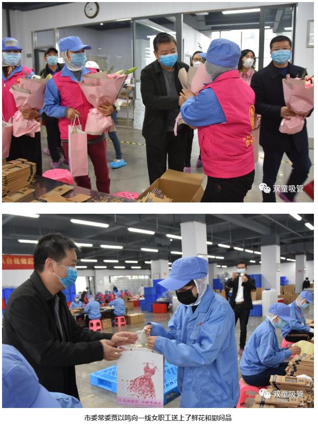春意融融,百草吐芳。3月8日上午,時(shí)值“三八”國(guó)際勞動(dòng)?jì)D女節(jié),義烏市市委常委賈以鳴一行走進(jìn)“雙童”,慰問(wèn)企業(yè)一線辛勤付出的女職工們,并為他們獻(xiàn)上了鮮花及節(jié)日祝福!