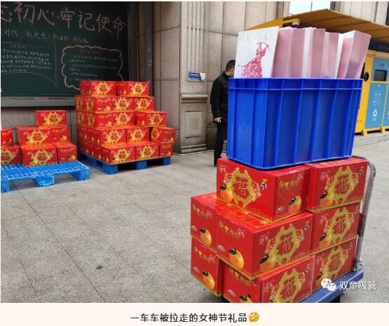 一箱箱椪柑,一套套精美小禮物,看的男同胞們都直呼想要呢。不過(guò),這份專屬于女職工們的福利,快看我們各位女神抱著禮物開(kāi)心的樣子,別急別急,留一套給吸管妞哈!
